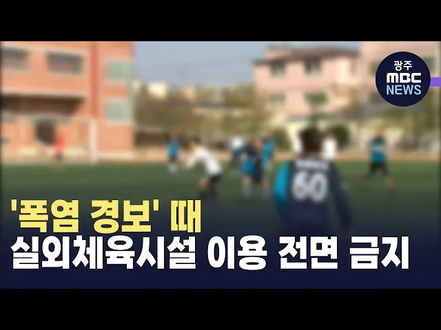 광주에 폭염 경보가 발령되면 실외 체육시설 이용이 금지됩니다. 광주시는 폭염 경보 때는 전면 이용 금지, 주의보 단계에서는 이용을 자제하도록 하는 내용 등을 담은 폭염 대응 체육활동 세부 기준을 마련해 시행한다고 밝혔습니다. 적용 대상은 시 체욱회와 장애인체육회, 자치구와 공사,공단 등에서 운영하는 체육시설...