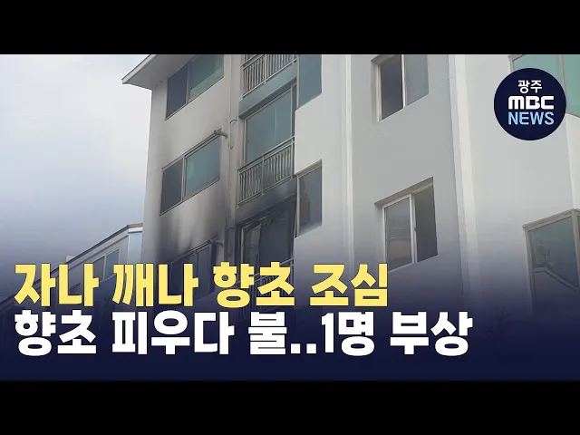 오늘(13) 오후 4시쯤 광주시 광산구 월계동의 한 아파트 3층에서 불이 나 50대 집주인이 불길을 피하려고 난간에 매달려 있다 떨어져 다쳤고, 주민 10여명이 긴급 대피했습니다. 소방당국은 작은방에 켜둔 향초에서 불길이 시작된 것 같다는 집주인을 말을 토대로 정확한 화재 원인을 조사하고 있습니다.