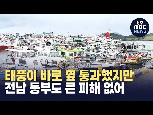 (앵커)제6호 태풍 카눈이 전남 동부 지역 옆을 통과하면서 강한 바람이 불고 많은 비가 쏟아졌습니다. 어민들과, 해안가 인근 주민 지역 산업계도 태풍의 진로를 주시하며 대비책 마련에 분주했는데요. 도로 침수와 가로수 넘어짐 등 피해 신고가 잇따랐지만, 다행히 큰 피해로 이어지진 않았습니다. 유민호 기자입니다. (...