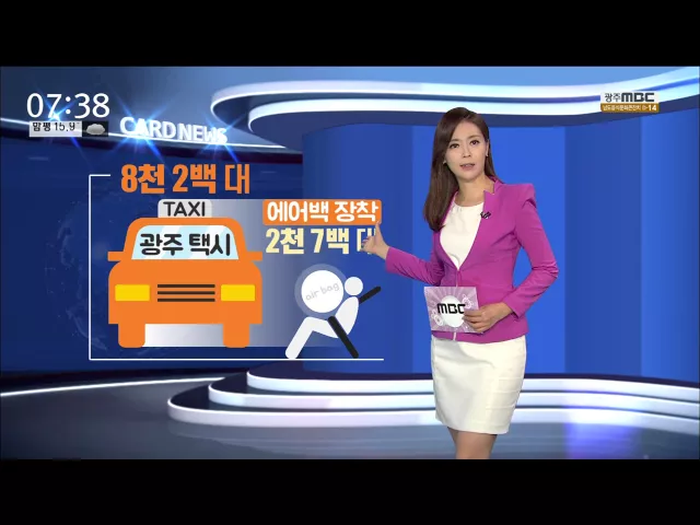 에어백, 차량 사고가 발생할 때 승객을 보호하는 중요한 장칩니다. 그런데요, 광주에서 운행되는 택시 대부분에 에어백이 장착돼 있지 않다는 사실 알고 계십니까? 광주 지역에 운행되고 있는 택시는 8200여 대. 이 가운데 에어백이 장착된 택시는 2천 7백여 대에 불과합니다. 다시말해, 택시 3대 가운데 2대가 에어백 없이...