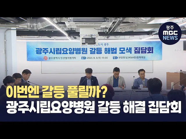 파업중인 광주시립 제1*2요양병원 등에 대한 갈등을 해결하고 모색하는 집담회가 열렸습니다. 광주시 민관협치협의회는 오늘(3일) 광주시립 1*2요양병원측의 노사와 대학교수 등 각계 전문가들과 함께 갈등 해결 방안 등에 대한 공론을 형성하고 대안을 찾기 위한 자유토론을 진행했습니다. 앞서 광주시립1·2요양병원 노조...