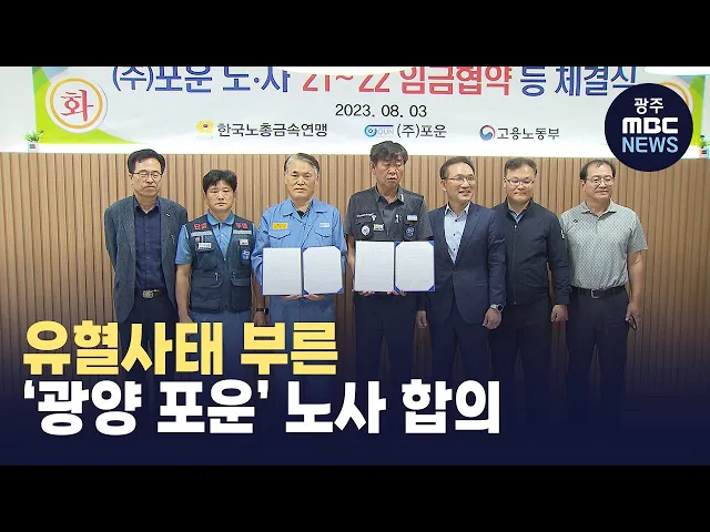 포스코 광양제철소 하청업체 포운 노사가 임금·단체협상에 합의하면서 460여 일 간 이어진 천막농성이 종료됐습니다. 양측은 오늘(3일) 오후 4시 광양제철소 복지회관에서 체결식을 열고 임금 인상과 연차 자율사용 보장 등 쟁점 사안에 합의(하기로) 했습니다. 이번 합의안은 고용노동부 여수지청, 한국노총 금속노조연맹...