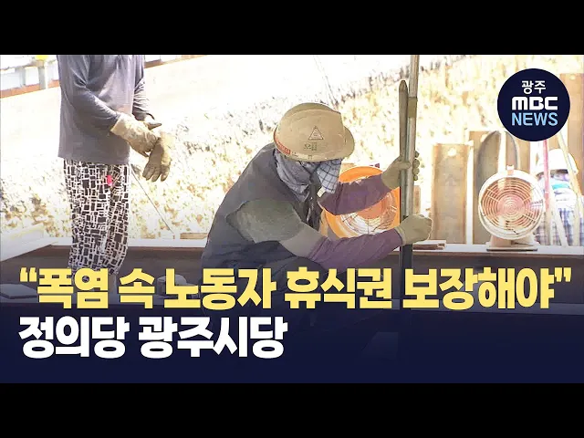 정의당 광주시당은 "광주시와 5개 자치구, 광주지방고용노동청은 폭염 속 노동자 휴식권을 적극적으로 보장해야 한다"고 촉구했습니다. 정의당 광주시당은 오늘 보도자료를 내고 "기록적인 폭염에 재난 문자만 보내는 것은 무책임한 행정"이라며 "노동자 휴식이 제대로 이뤄지도록 감시해야 한다"고 밝혔습니다. 한편 고용...