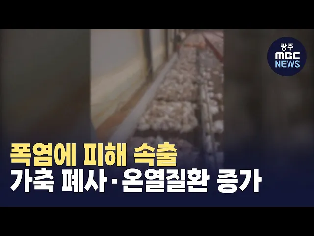 (앵커) 오늘 광주의 낮최고기온은 36도까지 올랐습니다. 광주전남 대부분 지역이 35도를 오르내리고 있는데요. 어제 폭염으로 죽은 가축이 1천마리 정도라고 했는데요 하룻만에 7배 가까운 1만 마리가 폐사한 것으로 집계됐습니다. 온열질환자도 급증하고 있습니다. 폭염에 사람도 동물도 속수 무책입니다. 박종호 기자가 ...