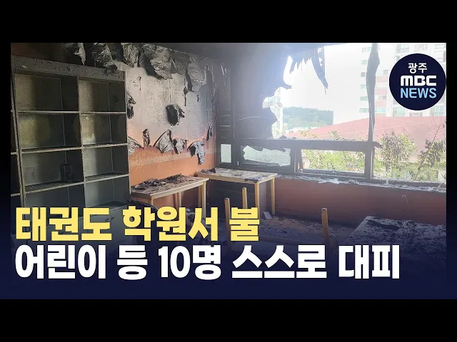 오늘(2) 오후 4시쯤, 광주시 광산구 신창동의 한 상가 3층에 있는 태권도 학원에서 불이 나 출동한 소방대에 의해 20분 만에 꺼졌습니다. 이 불로 다친 사람은 없었지만, 학원 안에 있던 어린이 등 10명이 스스로 대피하는 소동이 벌어졌습니다. 소방당국과 경찰은 선풍기쪽에서 연기가 시작됐다는 태권도 강사의 진술을 토...