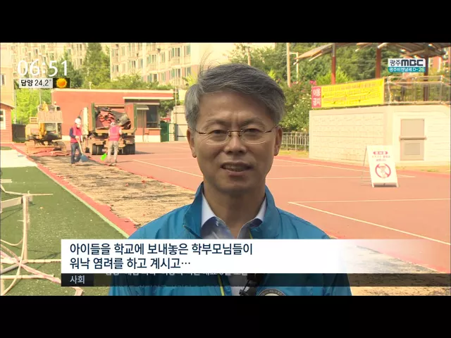 (앵커) 광주에서는 처음으로 광산구가 기준치 이상의 중금속이 검출된 학교 우레탄 트랙을 철거하기 시작했습니다. 지자체가 예산을 들여 우레탄 트랙 철거에 나섰는데, 정작 광주시 교육청은 달가워 하지 않고 있습니다. 송정근 기자입니다. (기자) 납에 오염된 우레탄 트랙을 대형굴착기가 걷어내 덤프트럭에 옮겨 담습니...