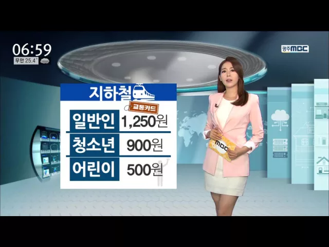 다음달부터 광주 시내버스와 지하철 요금이 인상됩니다! 교통카드를 기준으로, 시내버스 요금은 일반인 천2백50원, 청소년 8백원, 어린이는 4백원으로 오릅니다. 지하철 요금은 어른 천2백50원, 청소년은 9백원, 어린이는 5백원으로 인상됩니다. 성인을 기준으로, 지금보다 150원이 오르는 겁니다. 이에 따라, 어른은 한 달...