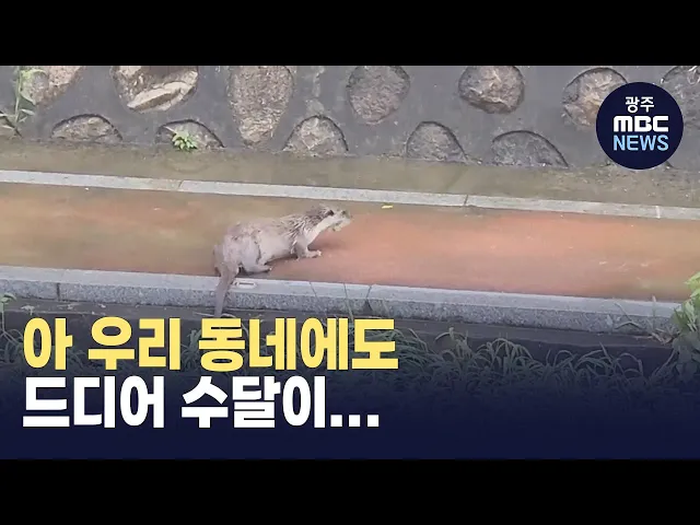 (앵커) 얼마전 광주 영산강 덕흥보에서 수달이 카메라에 포착됐는데 여수 도심 하천에서도 수달이 살고 있는 사실이 확인됐습니다. 한때 악취와 환경오염으로 몸살을 앓았던 여수 도심 연등천이어서 지역사회가 반가워하고 있습니다. 유민호 기자입니다. (기자) 흐르는 물속에서 빠져나온 수달 1마리가 땅으로 올라옵니다. ...