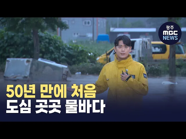 (앵커) 목포와 영암은 집중호우로 도심 곳곳이 침수돼 차량 통행이 전면 통제됐습니다. 만조시간까지 겹치면서 침수 피해가 컸는데요. 목포에서는 50년 만에 처음있는 일이라고 합니다. 안준호 기자가 취재했습니다. (기자) 폭우가 쏟아진 오늘 새벽 목포시 석현동 왕복 8차선 도로가 물바다로 변했습니다. 차량들은 물보라...