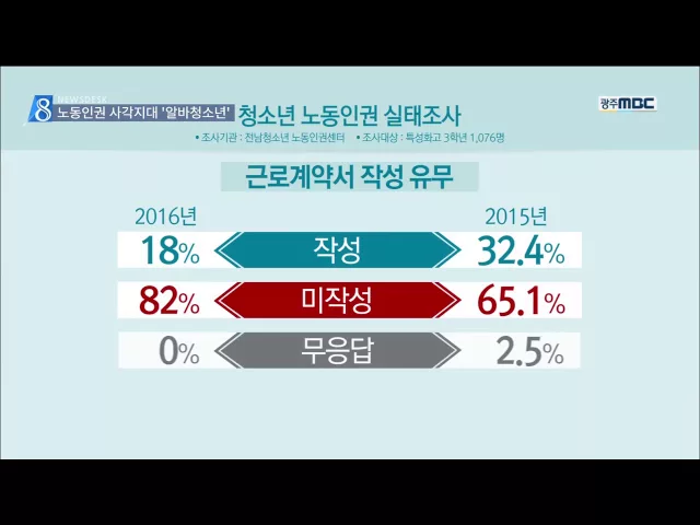 ◀ANC▶ 청소년 노동인권 문제가 최근 사회적 이슈로 떠오르고 있지만 여전히 여건은 개선되지 않고 있습니다. 청소년 상당수는 최저 시급도 받지 못하고 근로계약서도 없이 아르바이트하고 있습니다. 최진수 기자가 보도합니다. ◀END▶ 학교가 끝난 뒤, 그리고 방학기간 중에 아르바이트를 하는 청소년들이 늘고 있습니...
