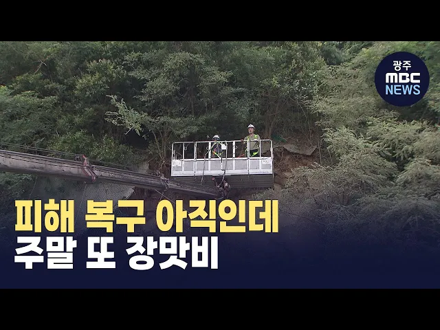 (앵커) 장맛비가 잠시 끝나고 맑은 날씨가 이어지고 있지만, 현장에서는 피해 복구 작업이 한창입니다. 주말과 휴일 우리 지역에는 또다시 많은 장맛비가 예보돼 있습니다. 광주전남지역은 30~80mm, 많은 곳은 100mm 이상 오는 곳도 있어서 긴장감도 커지고 있습니다. 유민호 기자입니다. (기자) 집중호우로 암반이 쏟아진 ...
