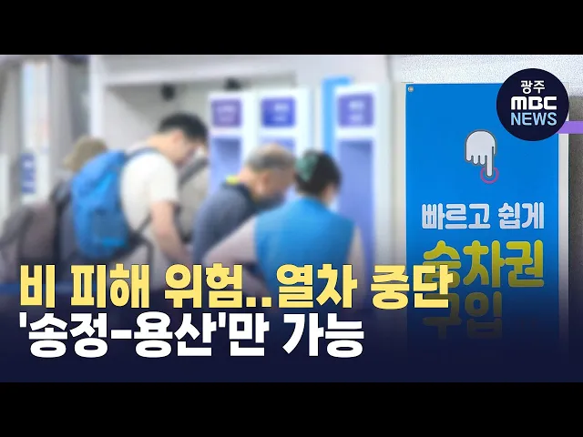 광주 전남 지역에 집중 호우가 이어지면서 KTX 광주송정-용산역 구간을 제외한 모든 노선의 열차가 운행이 중단됐습니다. 한국철도공사에 따르면 폭우로 인한 토사 유입과 산사태의 우려로 오늘(18) 오후 2시부터 KTX 고속선 외에 모든 열차 운행이 중지됩니다. 고속선으로 운행하는 송정-용산역 구간도 서행 운행에 따른 ...