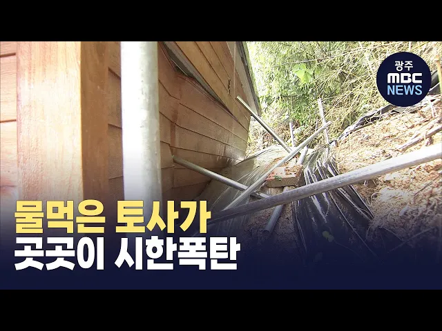 (앵커) 전국을 강타한 집중 호우로 곳곳에서 산사태 피해가 이어지고 있습니다. 산사태 위기 경보 최고 단계가 내려져 있는 광주*전남도 안심할 수 있는 상황이 아닙니다. 담양에서는 산사태가 일어나 주택을 덮치기도 했습니다. 천홍희 기자가 취재했습니다. (기자) 담양군 담양읍의 한 야산입니다. 토사가 흘러내리지 못...