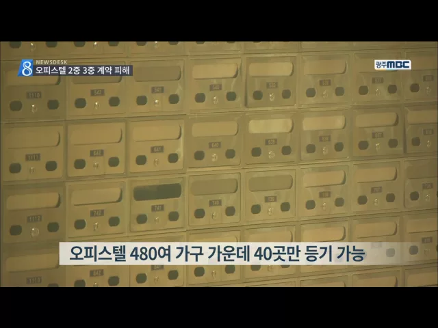 (앵커) 광주의 한 오피스텔이 2중 3중으로 분양됐습니다. 집 한 채를 동시에 여러사람에게 팔았다는 뜻입니다. 이중 계약이 3백여 건에 피해액은 백억 원에 이를 것으로 추산됩니다. 피해자들이 집단 반발하는 가운데 시행사 대표는 연락이 끊겼습니다. 이계상 기자입니다. (기자) 지난해 말에 준공 승인을 마친 광주시 서...