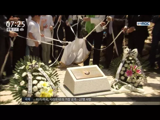 (앵커) 80년 5월 당시 광주의 참상을 세계에 알렸던 외신 기자들이 5.18 36주년을 맞아 광주를 찾았습니다. 푸른 눈의 목격자, 힌츠페터씨는 고인의 바람에 따라 유해 일부가 광주 망월묘역에 묻혔습니다. 송정근 기자입니다. (기자) 5.18 36주년을 맞아 광주를 찾은 외신 기자들이 옛 전남도청을 둘러봅니다. 닷 찾은 항쟁...