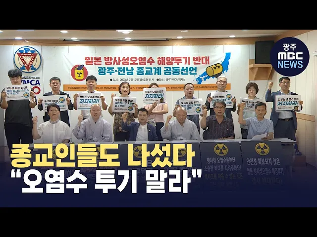 광주 지역 종교인들이 일본의 후쿠시마 방사능 오염수 해양 투기 철회와 한국 정부의 적극적 대응을 주문했습니다. 광주종교인평화회의와 시민사회는 오늘(17) 광주 YMCA에서 기자회견을 열고 "인간의 탐욕과 무지로 인해 생겨난 방사능 오염수로부터 우리사회를 안전하게 지켜야 한다"며 이 같이 촉구했습니다. 이들은 "일...