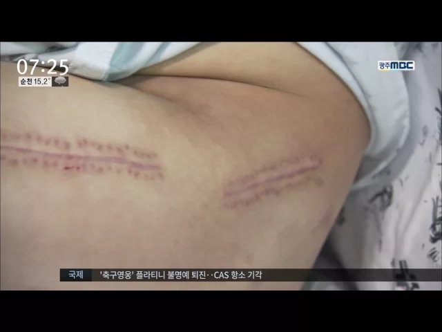 (앵커) 광주의 한 장애인 보호센터에서 40대 장애인이 남성 사회복지사에게 폭행을 당했다는 의혹이 불거졌습니다. 장애인은 병원에 입원 중이며 가족들은 사회복지사 등을 경찰에 고소했습니다. 송정근 기자의 단독보도입니다. (기자) 한 쪽 다리에 피멍이 들어있고, 뼈가 부러져 수술을 받은 다리에는 철심을 박은 자국이...