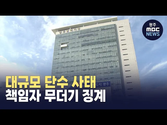 지난 2월 광주에서 발생한 대규모 단수사태와 관련해 광주시 상수도사업본부 직원들이 무더기로 징계를 받게 됐습니다. 광주시 인사위원회는 최근 상수도사업본부 직원 3명에 대해 견책, 13명에 대해 불문 경고 처분을 의결했다고 밝혔습니다. 지난 2월 광주 덕남정수장 송수관로 밸브 고장으로 2만 8천 여세대에 수돗물 공...