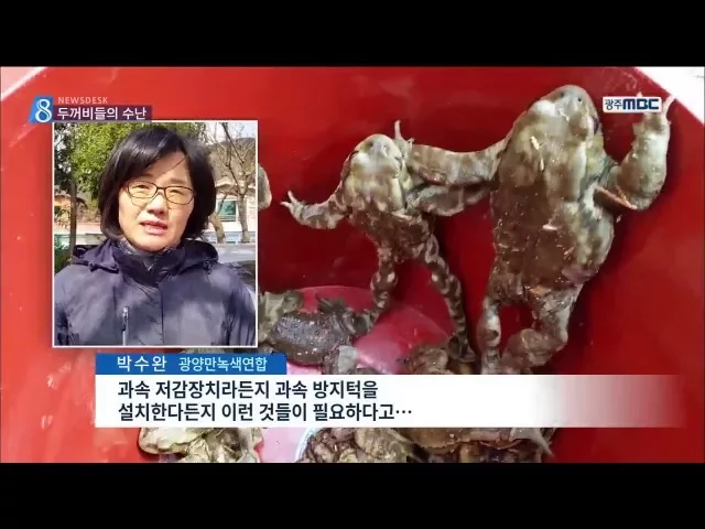 ◀ANC▶ 이제 곧 동물들이 겨울잠에서 깨어난다는 경칩입니다. 섬진강 두꺼비도 알을 낳기 위해 물가를 찾는데 도로를 건너다 떼죽음을 당하는 일이 반복되고 있습니다. 권남기 기자입니다. ◀VCR▶ 겨울잠에서 깬 두꺼비가 산속을 떠나 물가로 움직입니다. ◀SYN▶(두꺼비 울음소리) 엉금엉금. 풀숲을 헤치고 가다 배수...