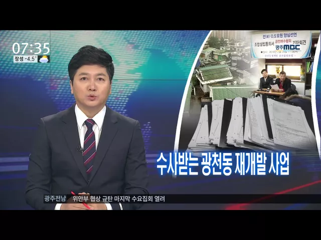 (앵커) 광주 최대 규모 재개발 사업인 광천동 재개발이 경찰의 수사를 받게 됐습니다. 조합 설립에 필요한 주민동의서가 불법적으로 작성됐다며 재개발을 반대하는 비대위가 현 조합장 등을 경찰에 고발했습니다. 송정근 기자입니다. (기자) 재개발 지역인 광천동에 살고 있는 71살 장 모 할머니.. 최근 누군가가 자신의 이...