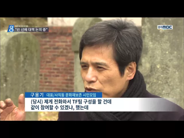 (앵커) 광주공원의 친일파 비석이 일부 훼손된 채 발견됐습니다. 누군가 고의로 훼손했을 가능성이 커보이는데요. 광주시가 반 년간 대책 논의만 하는 사이 이런 일이 벌어졌습니다. 김인정 기잡니다. (기자) 친일인사 윤웅렬과 이근호의 공을 기리는 내용을 담은 비석입니다. 지난주 주말, 100여년 된 이 비석이 일부 훼손...