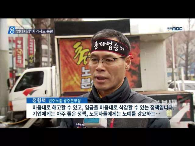 (앵커) 정부가 발표한 '양대지침'을 놓고 지역 노동계의 반발이 이어지고 있습니다. 경영계는 좋은 일자리가 더 생길 것이라며 반기고 있는데, 양대지침이 지역에는 어떤 영향을 미칠 것인지 김철원 기자가 보도합니다. (기자) (스탠드업)한국노총은 노사정 대타협 합의를 파기했고, 민주노총은 총파업까지 선언했습니다. ...
