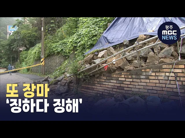 (앵커) 이번주 광주전남지역에는 정말 많은 장맛비가 쏟아졌습니다. 계속된 비로 지반이 약해지면서 옹벽이 무너지고 나무가 뿌리째 뽑히는 등 피해가 속출했습니다. 김영창 기자가 취재했습니다. (기자)식당건물을 지탱하던 옹벽 한쪽이 폭삭 내려앉았습니다. 돌 덩어리 무게를 이기지 못한 식당 아래 난관은 엿가락처럼 ...