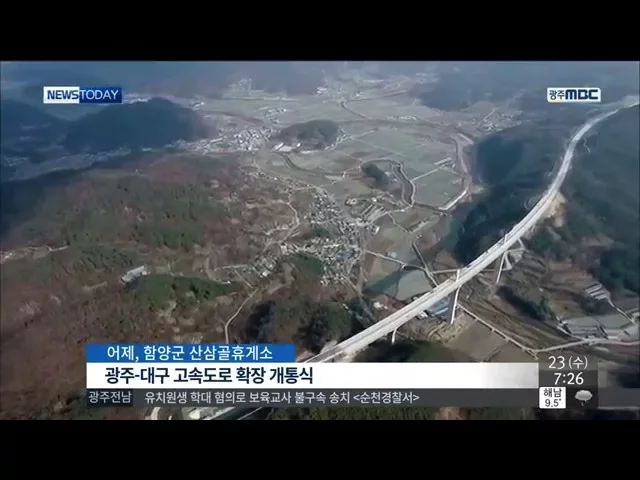 ◀ A N C ▶ 그동안엔 이름만 고속도로였던 88고속도로가 진짜 고속도로로 바뀌었습니다. 오늘(22) 개통식이 열렸습니다. 먼저 개통식 소식을 신동식 기자가 보도합니다. ◀ E N D ▶ ◀ V C R ▶ ### EFFECT ( 제막식~~~~)### 88올림픽 고속도로가 2차로에서 4차로로 확장 개통됐습니다. (투명 c.g) 광주에서 대구까지 거리는 기...