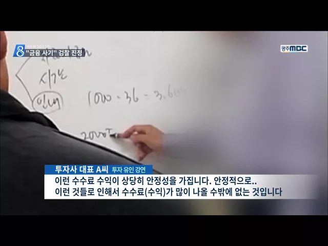 (앵커) 수십명의 투자자들이 20억 원대의 금융 사기를 당했다며 검찰에 수사를 의뢰했습니다. 이 투자자들은 아직 상황을 잘 모르는 투자자들까지 합하면 피해액이 수백억에 이를 거라고 말하고 있습니다 정용욱 기자입니다. (기자) 투자회사 대표 A씨가 청중을 대상으로 큰 돈을 벌게 해 주겠다며 투자를 유인합니다. ◀S...