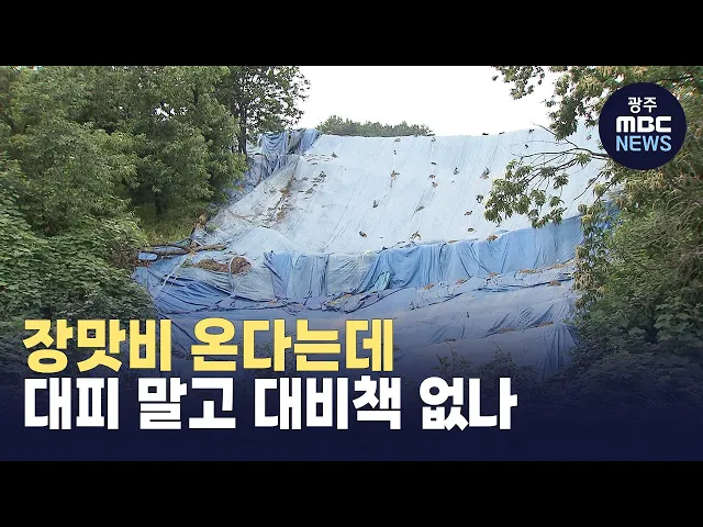 (앵커) 이번주말 본격적인 장마가 시작된다는 소식입니다. 몇해 전 산사태가 일어났던 피해 지역 주민들은 걱정이 큰데요. 유민호 기자가 주민들을 만났습니다. (기자) 2년 전 집중호우로 흙이 쏟아지면서 주민 1명이 숨진 광양 탄치마을입니다. 마치 스키 슬로프가 떠오르는 비탈면. 올해 상반기 예정됐던 복구 작업이 밀...