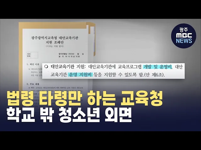 (앵커) 앞서 보신대로 학교 밖 청소년이 겪고 있는 어려움을 해결해보자며 최근 시의회에서 대안교육기관을 지원할 수 있는 조례안을 통과시켰습니다. 그런데 정작 광주시교육청은 조례안을 반대하고 있습니다. 무슨 이유인지 계속해서 송정근 기자가 취재했습니다. (기자) 학교 밖 청소년들을 돌보고 있는 광주 남구의 한 ...