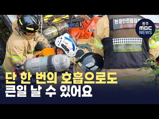 (앵커) 밀폐된 공간에서 작업 중 크고작은 질식사고가 잇따르고 있습니다. 밀폐된 공간에서는 단 한 번의 호흡만으로도 의식을 잃을 수 있어서 안전수칙을 반드시 지켜야 합니다. 서일영기자가 취재했습니다. (기자) 지난 18일 완도의 한 양식장 정화처리시설에서 질식사고가 발생했습니다. 내부 청소를 하던 노동자들이 갑...