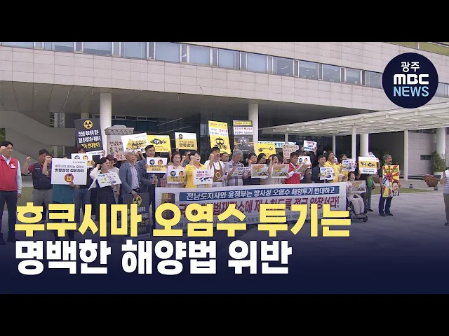 환경 단체가 후쿠시마 방사성 오염수 해양 투기가 저지될 수 있도록 적극 대응할 것을 전남도에 강력히 요구했습니다. 광주환경운동연합 등 250개 환경단체는 오늘(20) 기자회견을 열고 후쿠시마 방사성 오염수 해양 투기는 유엔해양법 협약을 명백히 위반하고 있다며, 전남도가 일본을 국제해양법에 제소하도록 정부에 적...