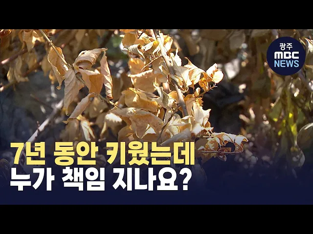 (앵커) 수년간 애써 키워온 나무가 바로 옆 군부대 공사 때문에 망가지는 일이 발생했습니다. 하지만 국방부도 업체들도 모두 책임지지 않으면서, 농가만 한숨짓고 있습니다. 김초롱 기자의 보돕니다. (기자) 광주 광산구에 있는 한 묘목 농가입니다. 사시사철 푸릇해야 할 나뭇잎이 노랗게 변했고, 아예 잎 하나 없이 말라...