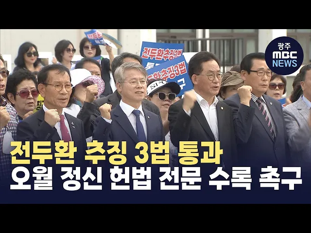 5.18 공법단체와 기념재단 등이 전두환 추징 3법 국회 통과와 5.18정신 헌법 전문 수록을 촉구했습니다. 5.18 부상자회 등은 오늘 오후 3시 5.18민주광장에서 기자회견을 열고 전우원씨의 폭로로 전두환 미납추징금을 환수해야 한다는 국민적인 요구가 높아지고 있는 만큼 국회에 계류하고 있는 전두환 추징3법을 신속히 심...