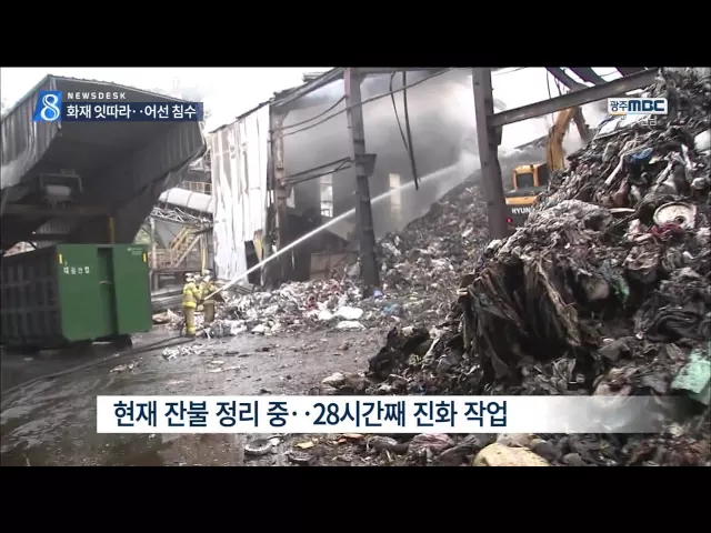 (앵커) 쌀쌀한 날씨 속에서 도심 상가와 폐기물 공장에서 화재가 잇따랐습니다. 여수 해상에서는 어선이 침수됐지만 다행히 인명피해는 없었습니다. 휴일 사건사고를 정용욱 기자가 정리했습니다. (기자) 폐기물 공장에서 중장비까지 동원한 진화작업이 한창입니다. 곡성의 한 산업폐기물 처리공장에서 불이 난 시각은 그제...