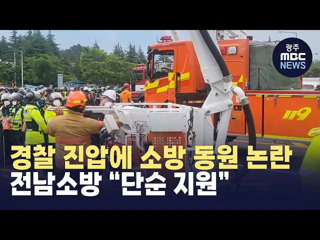 경찰의 노조 간부 강경 진압에 굴절차 등 소방 장비가 동원됐다는 MBC 보도 이후 지역 정치권에서도 비판이 나오고 있습니다. 임형석 전남도의원은 전남소방본부 예산은 공공복리와 구조 활동에 쓰이라고 전남도의회가 승인하는 것이라며, 소방이 경찰과 함께 시위를 탄압하는데 도움을 준 것은 이치에 맞지 않다고 지적했...