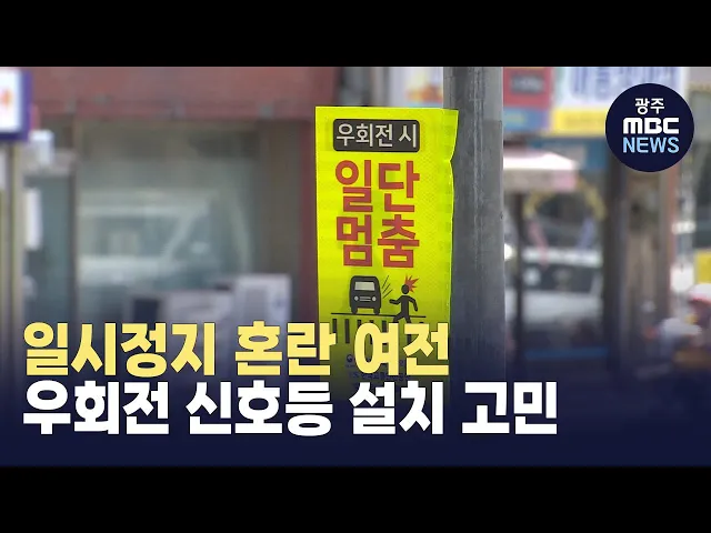 (앵커) 우회전을 할때 일시정지가 의무화됐지만 아직 이같은 제도를 잘 몰라서 지키지 않은 경우도 많습니다. 이런가운데 차량 정체 우려와 예산 문제 등으로 우회전 신호등을 설치할지 말지, 경찰과 지자체의 고민도 커지고 있습니다. 서일영 기자가 보도합니다. (기자) 목포 도심의 한 교차로 승용차가 횡단보도 앞에서 ...