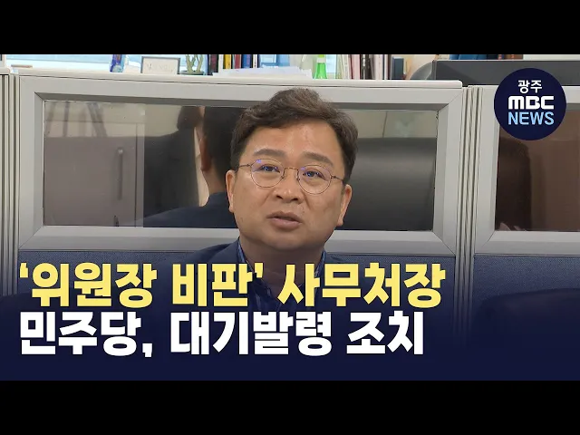 더불어민주당이 도당 예산 등 운영방식을 놓고 신정훈 전남도당위원장을 공개 비판해 논란을 불러일으킨 김유승 도당 사무처장을 중앙당 대기발령 조치했습니다. 민주당 중앙당은 전날 김 처장을 중앙당 대기발령 조치하고 박정식 민주연구원 수석연구위원을 후임으로 발령했습니다. 중앙당은 김 처장이 공개적으로 신 위원...