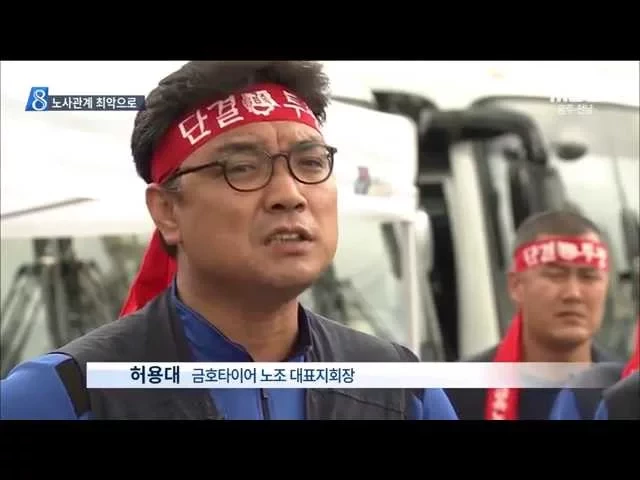 금호타이어 노조의 전면 파업이 20일을 넘기면서 매출 피해가 눈덩이처럼 불어나고 있습니다. 파업에 대한 맞불로 사측이 오늘부터 직장 폐쇄에 들어가면서 노사 관계도 최악으로 치닫고 있습니다. 박수인 기자 금호타이어 광주 공장 정문이 통근버스들로 가로막혔습니다. 노조원들의 출입을 통제한다는 안내판도 설치됐습...