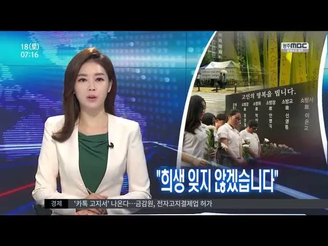 (앵커) 지난해 이맘때 세월호 실종자 수색 임무를 마치고 강원도로 복귀하던 헬기가 추락했습니다. 당시 사고로 숨진 소방관들의 높은 뜻을 기리기 위한 추모식이 열렸습니다. 송정근 기자입니다. (기자) 세월호 참사로 온 국민이 슬픔에 잠겨있던 작년 7월, 또 하나의 비보가 전해졌습니다. 세월호 실종자 수색 임무를 마...