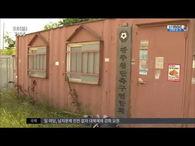(앵커) 광주 극락강 둔치에 설치된 불법 컨테이너들이 골칫거리가 되고 있습니다. 평소에도 볼성사나운데 이제 장마가 시작되면서 안전사고의 원인될 가능성이 높습니다. 송정근 기자가 현장 취재했습니다. (기자) 광주 극락강 둔치에 조성된 운동장입니다. 2만 볼트가 넘는 고압전선이 지나는 다리 바로 아래 컨테이너로 ...
