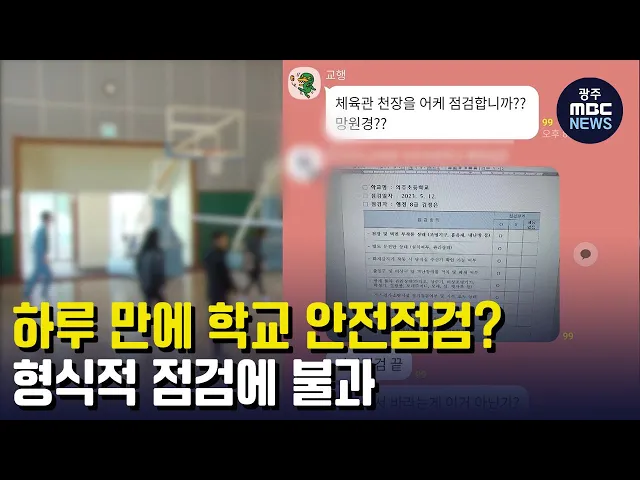 (앵커) 지난주 여수의 한 초등학교에서 구조물 추락 사고가 발생했죠, 그 이후 전라남도교육청은 전체 학교에 긴급 안전점검을 지시했습니다. 그런데 내용을 살펴보니 부실한 점검이라는 지적이 나오고 있습니다. 김단비 기자입니다. (앵커) 전남도교육청이 지난 12일 도내 전체 학교에 보낸 공문입니다. 각 학교마다 강당...