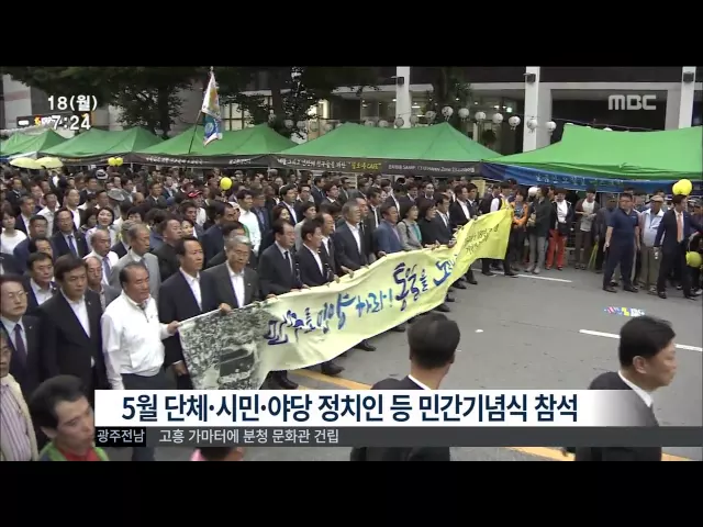 ◀ANC▶ 올해도 이렇게 노래 때문에 분열하고 갈등했지만, 그 못지않게 하나되는 모습도 보였습니다. 특히 고통받는 이들을 보듬는 모습은 5월 정신의 또 다른 구현이었습니다. 송정근 기자 ◀END▶ (이펙트--민주의 종 타종) '광주 정신'을 만방에 알리는 민주의 종 타종에는 여야도, 영호남도, 따로가 아니었습니다. 5...