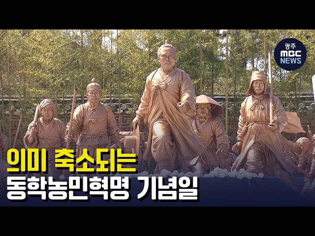 (앵커) 왜곡된 봉건질서와 외세 침탈에 맞선 동학농민 혁명의 의미를 되새기는 기념식이 열렸습니다. 독립 운동과 민주화 운동으로 이어졌다는 대내외의 평가에도 불구하고 국가 기념일로 지정된 건 불과 5년 전 일인데요. 기념식 규모마저 갈수록 축소되면서 국가기념일 제정이 무색하다는 지적입니다. 전재웅 기자입니다....