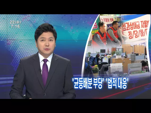 (앵커) 차등 지급이냐 균등 배분이냐 성과 상여금 재배분 문제를 놓고 요즘 광주 서구청이 시끄럽습니다. 이런 가운데 행정자치부가 균등 배분은 부당행위라고 유권해석을 내리면서 노조가 반발하고 있습니다. 정용욱 기자입니다. (기자) 임우진 광주서구청장은 지난달 5급 이하 직원 759명에게 21억 7천만원의 성과 상여금...
