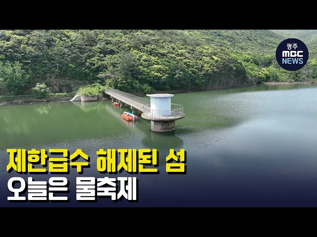 (앵커) 오랜 가뭄으로 일년 가량 물부족에 허덕이던 완도 섬지역의 제한급수가 오늘(8)부터 해제됐습니다. 섬 주민들은 이번 비로 물축제도 가능할 정도라면서 반겼습니다. 신광하 기자가 보도합니다. (기자) 메말랐던 섬 계곡에 물이 흐르고 저수지 둑까지 넘실거릴 정도로 물이 가득찼습니다. 바닥이 드러난 두달 전과 비...