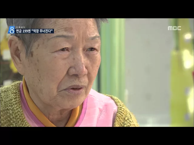 (앵커) 일본에 강제로 끌려가 일한 근로정신대 할머니들에게 연금으로 99엔을 지급했다가 공분을 샀던 일본 정부가 또 다른 할머니들에게 199엔을 지급했다고 어젯밤에 통보했습니다./ 우리 돈으로는 천8백 원입니다. 광복 70년, 3.1절을 앞두고 이 소식을 들은 할머니들은 억장이 무너졌습니다. 김인정 기자가 단독 보도합...