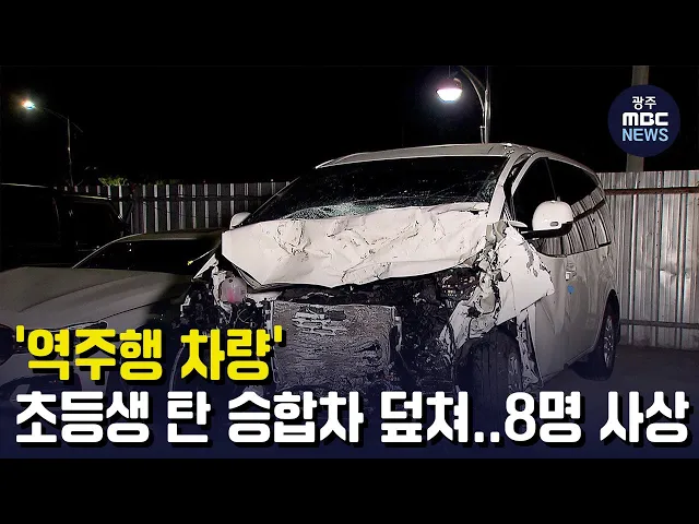 '역주행 차량' 초등생 탄 승합차 덮쳐..8명 사상