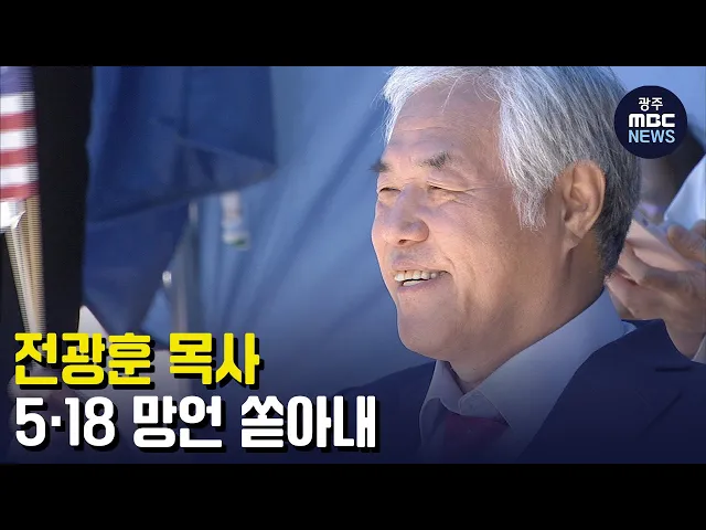 (앵커) 5.18 민주화 운동을 왜곡하는 발언으로 줄곧 논란을 샀던 전광훈 목사가 광주를 찾았습니다. 5.18은 북한군이 개입한 폭동이라는 등의 망언을 거침없이 쏟아냈습니다. 임지은 기자가 보도합니다. (기자) 광주역 앞에 사람들이 태극기와 성조기를 흔들고 있습니다. 전국을 돌며 집회를 열고 있는 전광훈 목사와 그의 ...